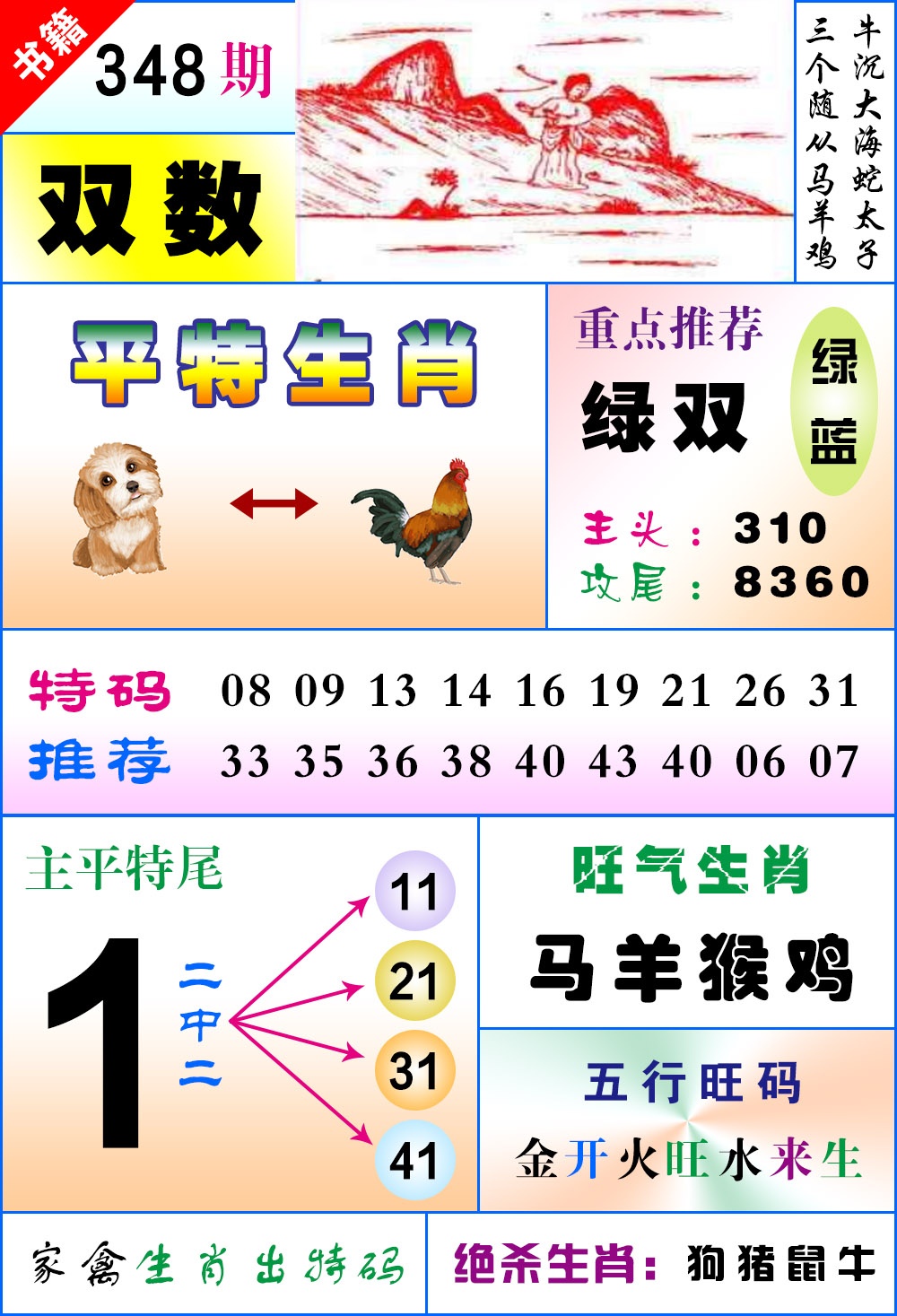 348期: 【马鸡虎蛇龙牛】 开??